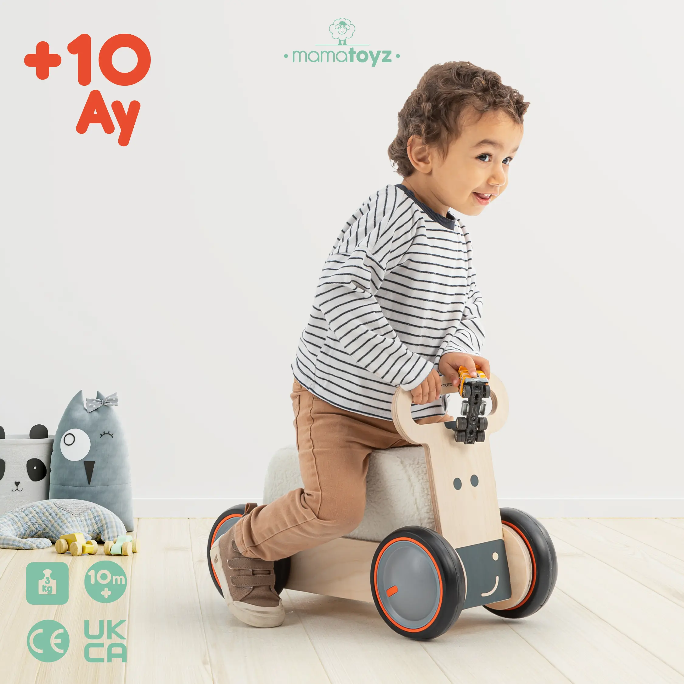 DriveMe Soft ahşap yürüteç, 10 aylık+ bebekler için tasarlandı. Oyuncak depolu, ayarlanabilir hızlı tekerlekler ve Mavi Melek sertifikalı boyalarıyla %100 güvenli. Hemen keşfedin!