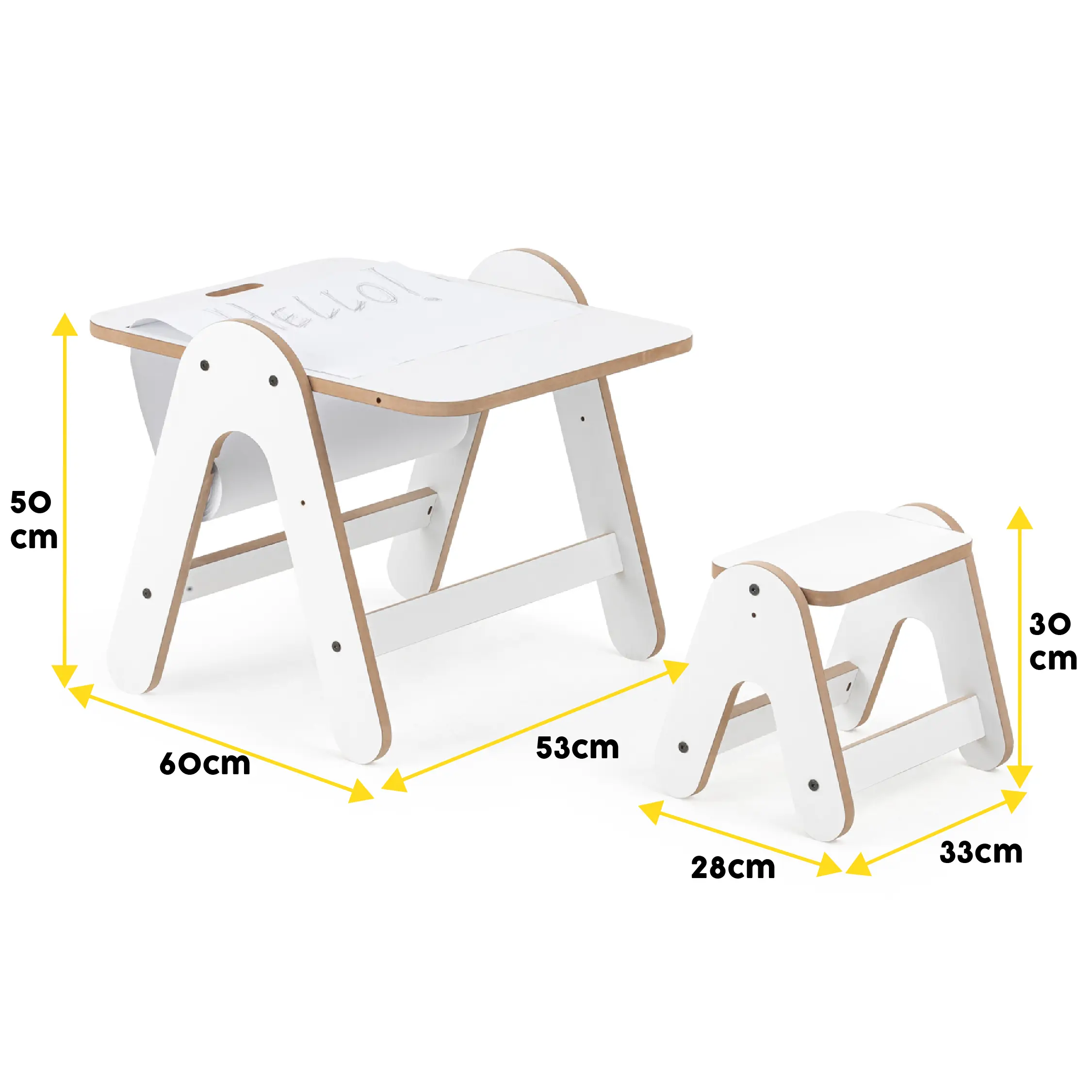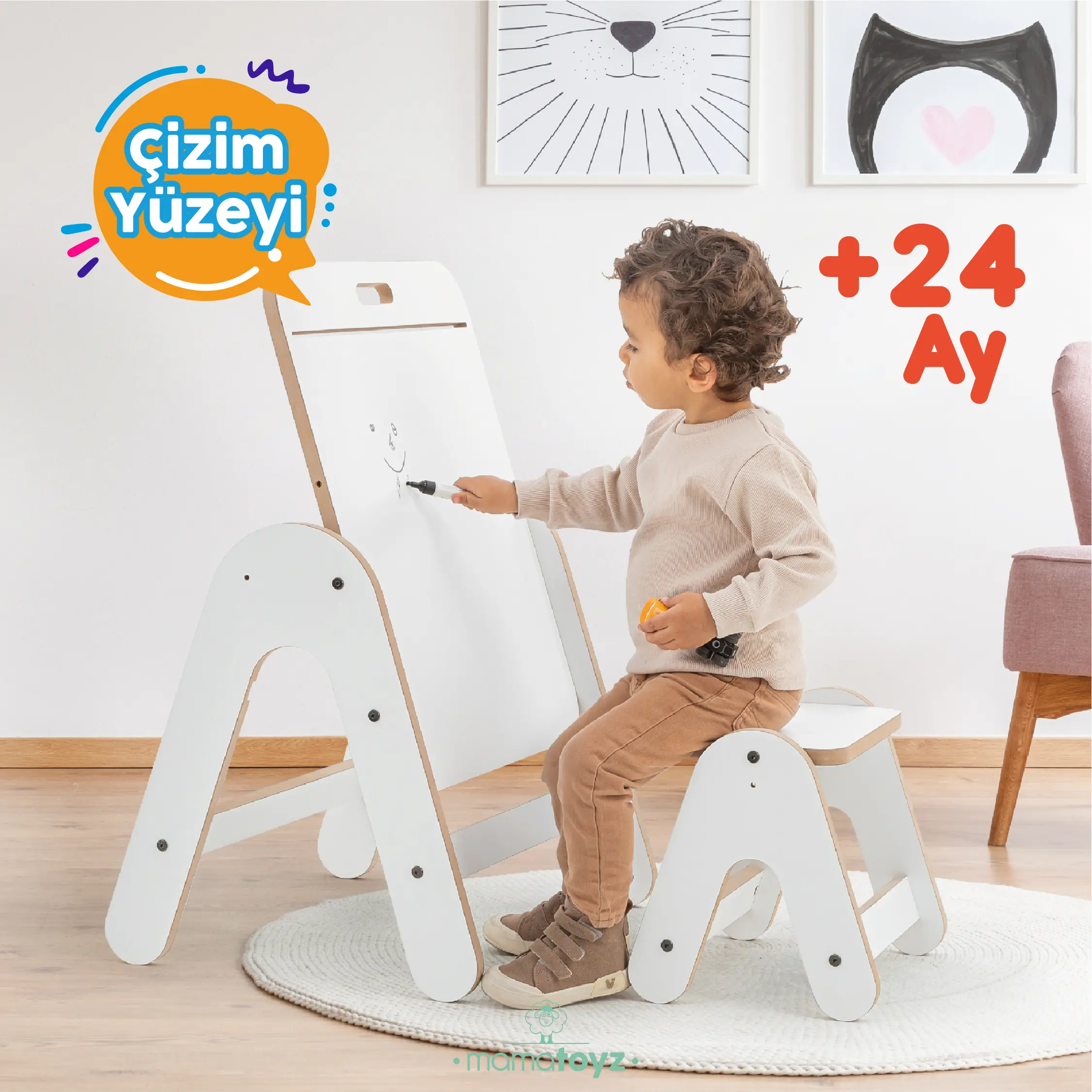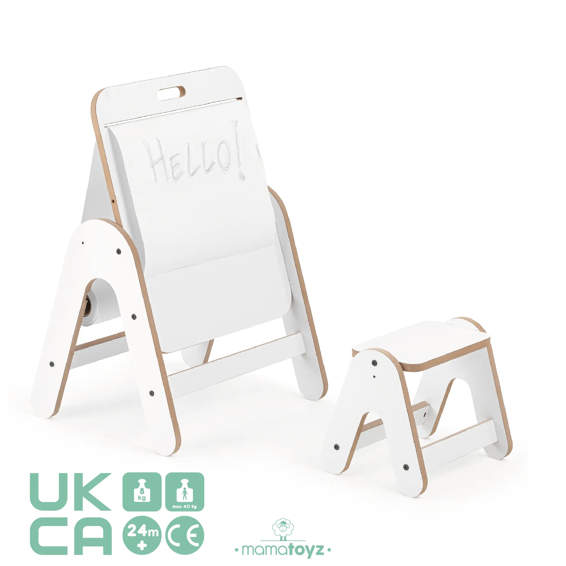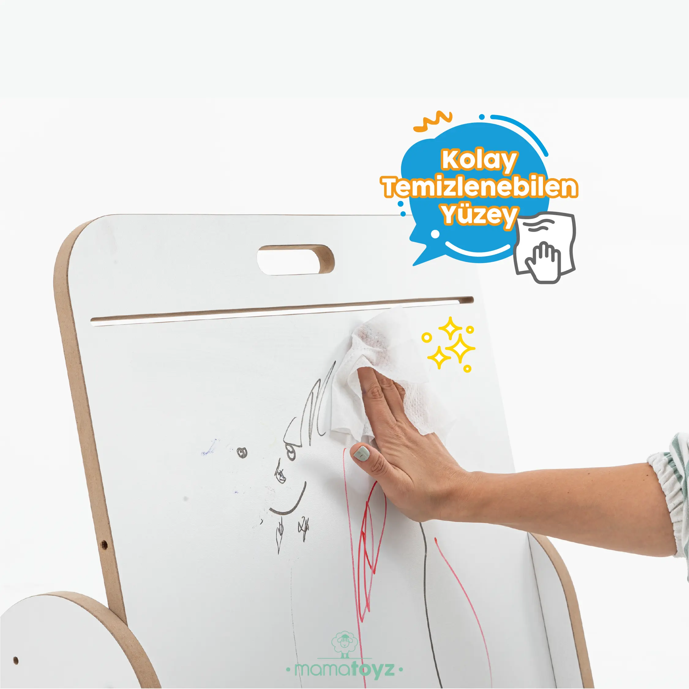 Yalnızca bir vidayla masa, kolayca yazı tahtasına dönüştürülebilir. Sonsuz rulo kağıt takılabilir, bu da çocukların yaratıcılığını serbest bırakmasına olanak tanır.