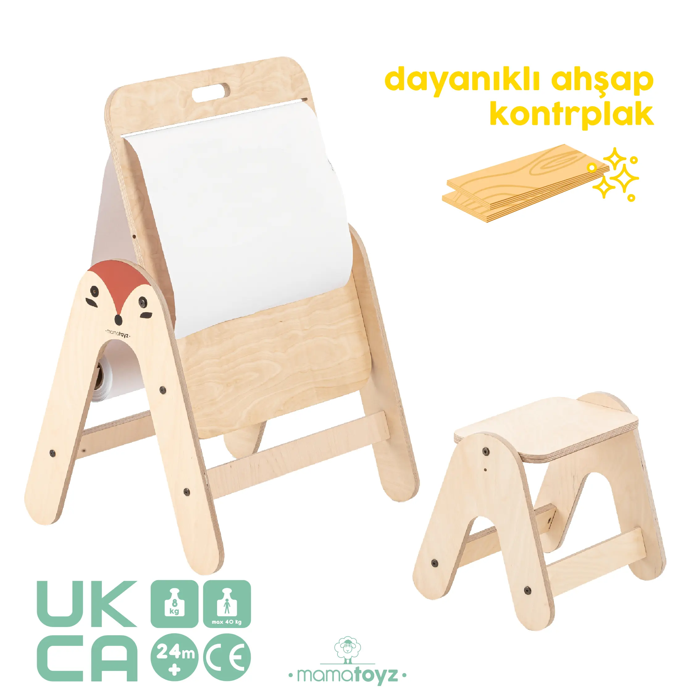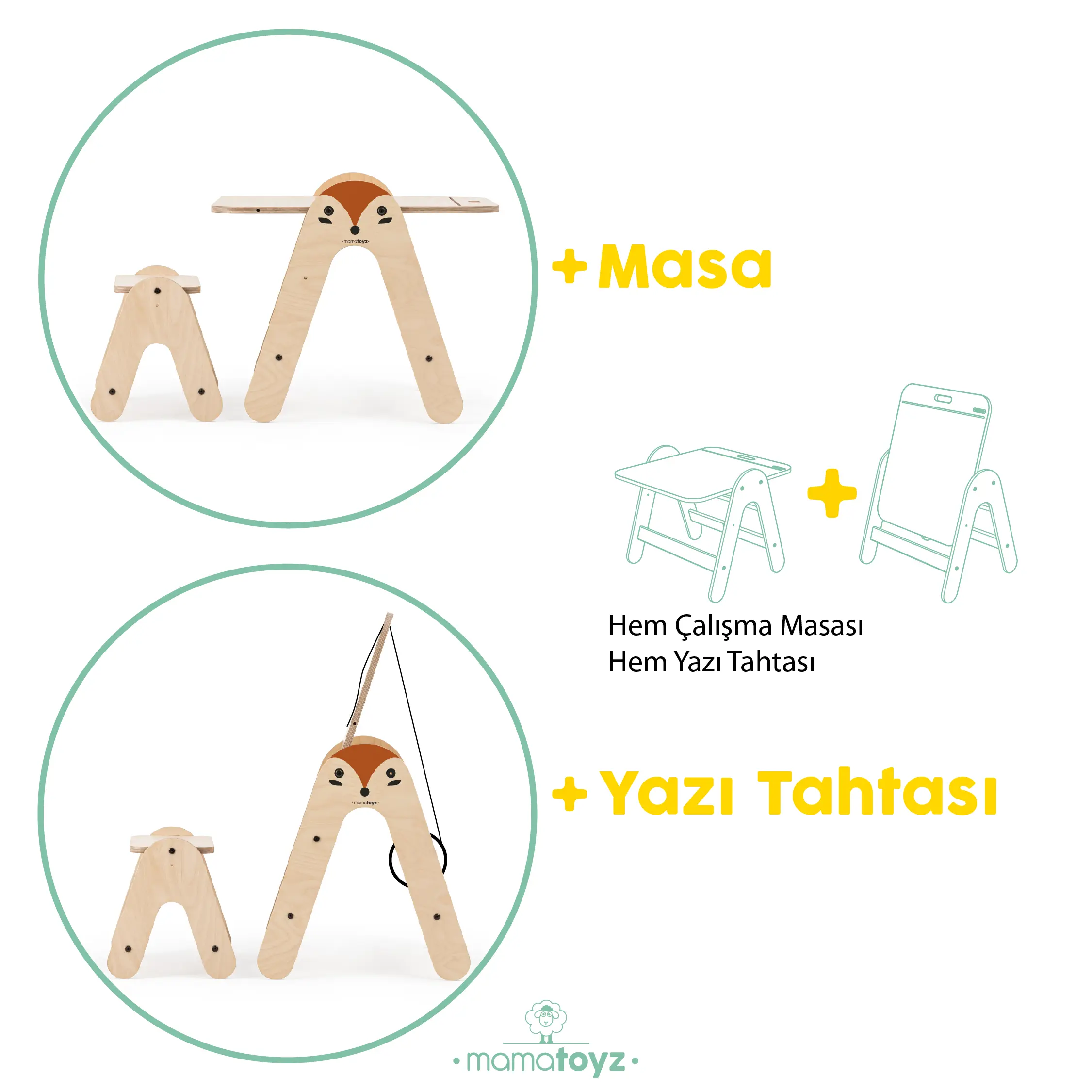 Massam Tilki Figürlü Ahşap Aktivite Masası, Montessori eğitimine uygun %100 doğal huş ağacından üretilmiştir. Yazı tahtasına dönüşen bu masa ile çocukların motor becerilerini geliştirin! Hemen satın alın.