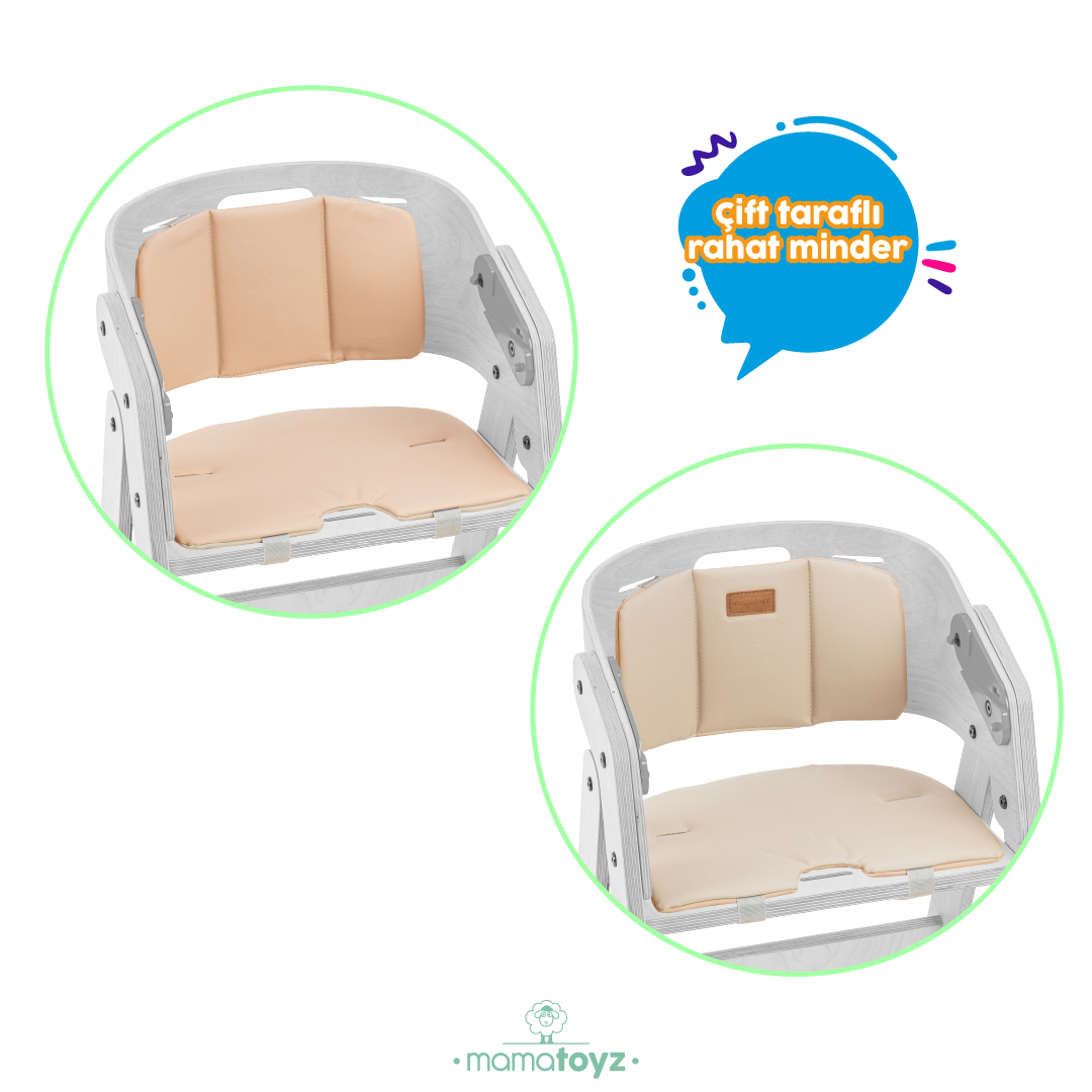 Mamatoyz MyChair mama sandalyesine özel üretilen yumuşak, vegan deri mama sandalyesi minderi. ; Özel kayışlı minderleri ile sağlam ve rahat. ; Velcrolu açma kapama detayı ile kolay silinebilir. ; Çift taraflı kullanım sayesinde 2 renk seçeneği tek üründe ! Krem ve sütlü kahve renkleri. ; Fotoğraflarda renkler farklılık gösterebilir. ; Mamatoyz güvencesiyle ! ( Kemerler MyChair mama sandalyesine dahildir, mindere dahil değildir !);