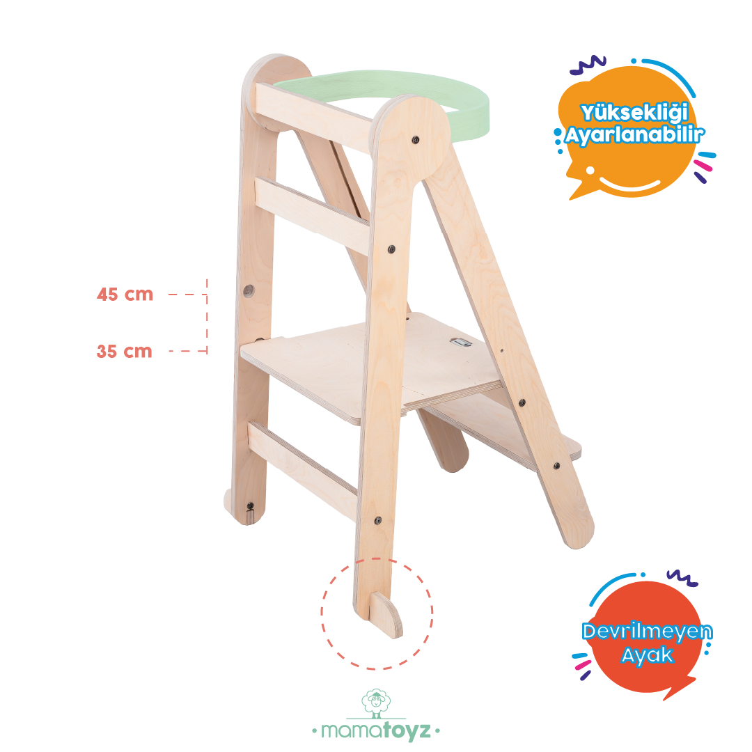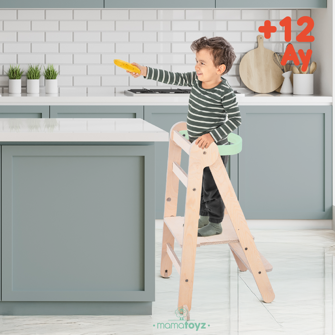 Çocuğunuzun güvenli ve özgürce keşfetmesi için Öğrenme Kulesi Mint! Montessori uyumlu, ayarlanabilir ahşap tasarımıyla mutfakta veya etkinliklerde kolaylık. Hemen satın alın!