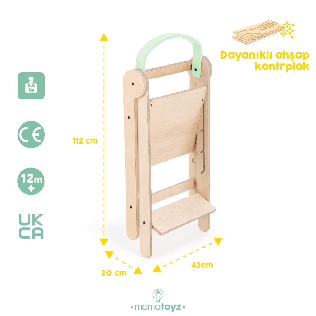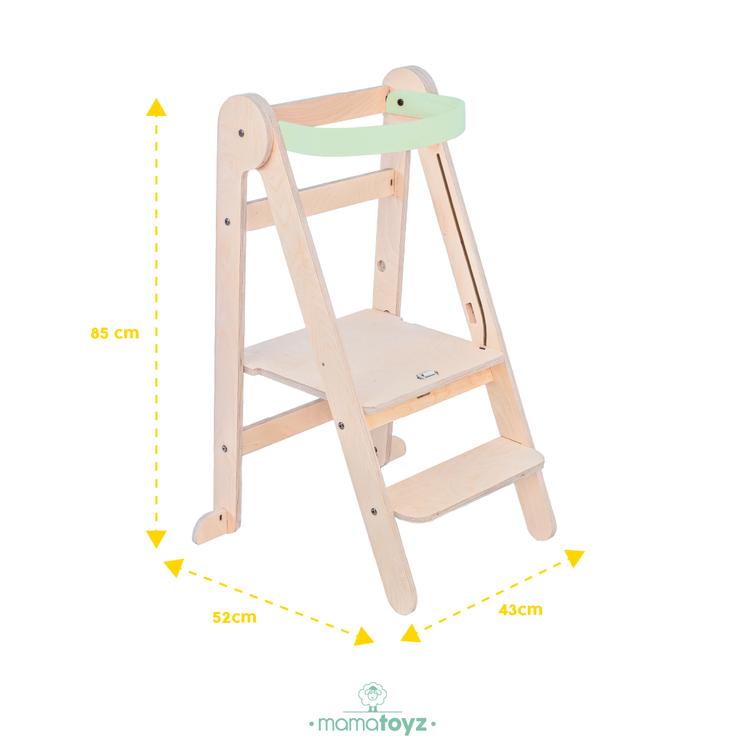 Çocuğunuzun güvenli bir şekilde mutfakta veya etkinlik masasında size eşlik etmesini mi istiyorsunuz? Öğrenme Kulesi Mint, Montessori felsefesine uygun tasarımıyla miniklerin hem öğrenmesini hem de eğlenmesini sağlıyor!