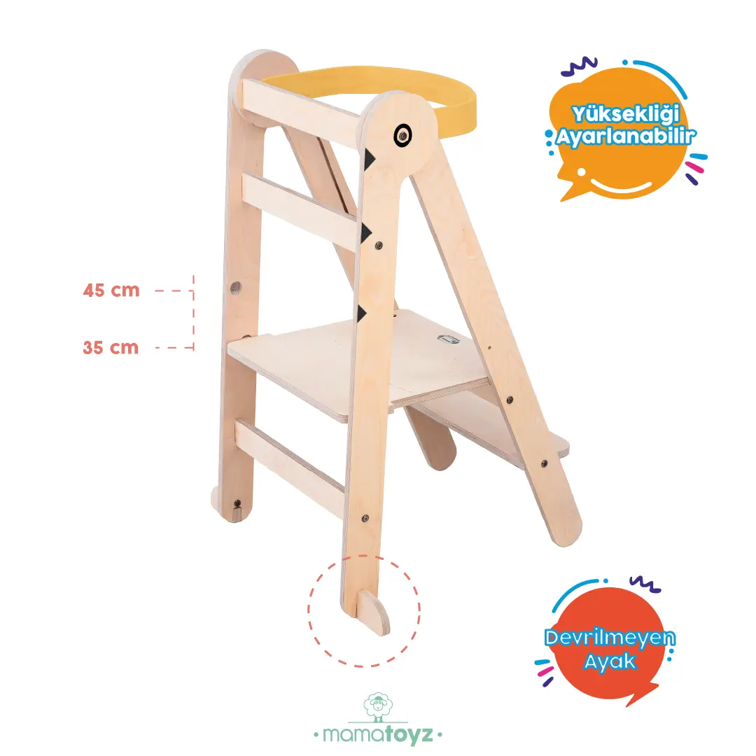 MamaToyz öğrenme kulesi Sarı Kuş, çocuğunuzun mutfakta güvenle yükselebilmesi ve eğitici aktiviteler yapabilmesi için tasarlandı. Montessori eğitimine uygun bu kule ile çocuğunuzun gelişimine destek olun!
