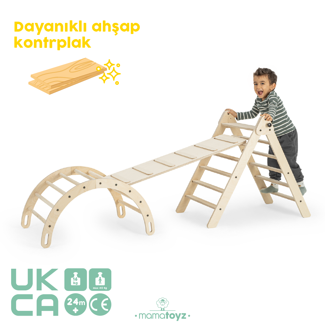 Pikko & Arc Montessori Pikler Üçgeni, çocukların fiziksel ve zihinsel gelişimini destekleyen, doğal ahşaptan üretilmiş Montessori oyun setidir.