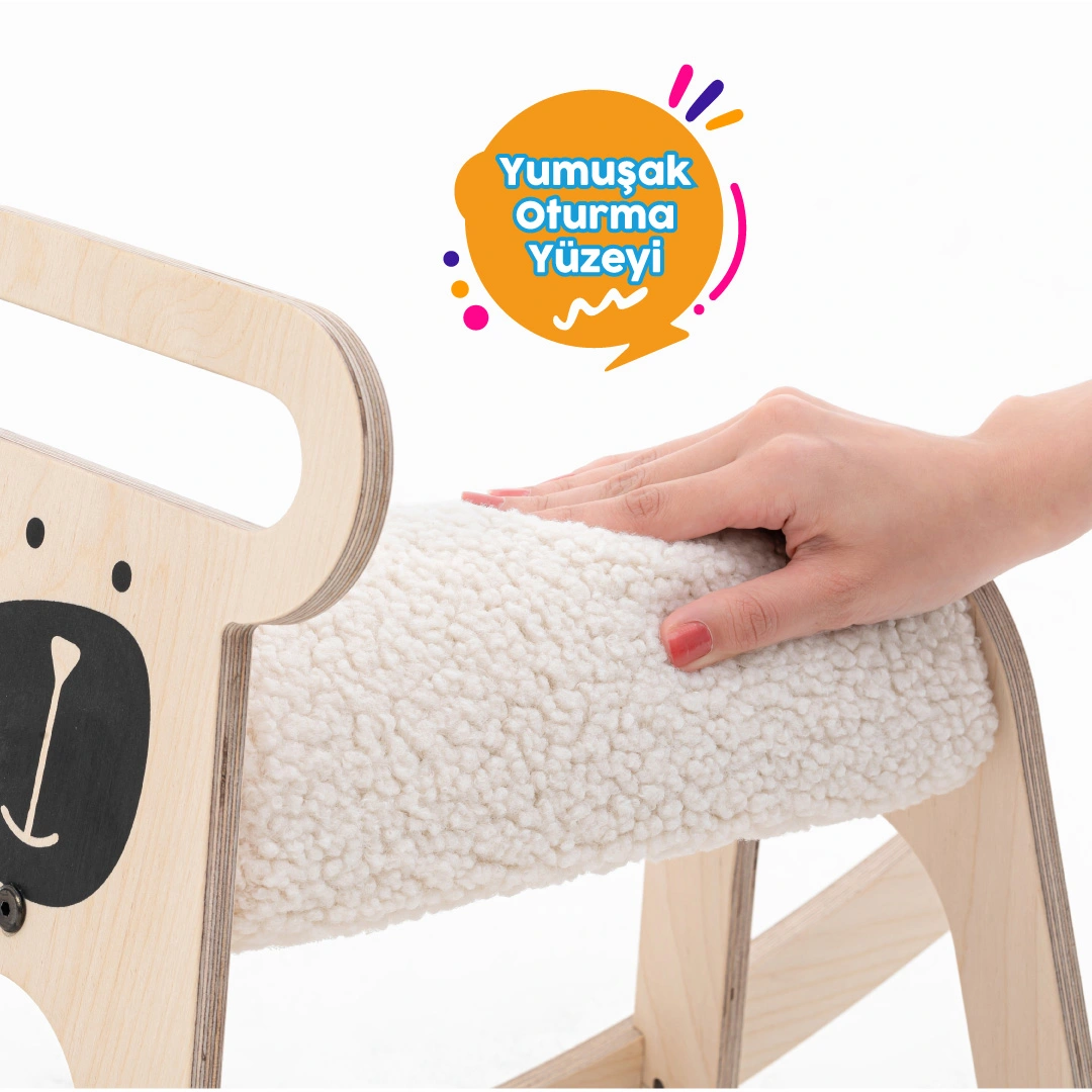 %100 doğal ahşap malzemeden üretilmiş eğitici bir oyuncaktır. Yumuşak oturma yüzeyi ile minikler